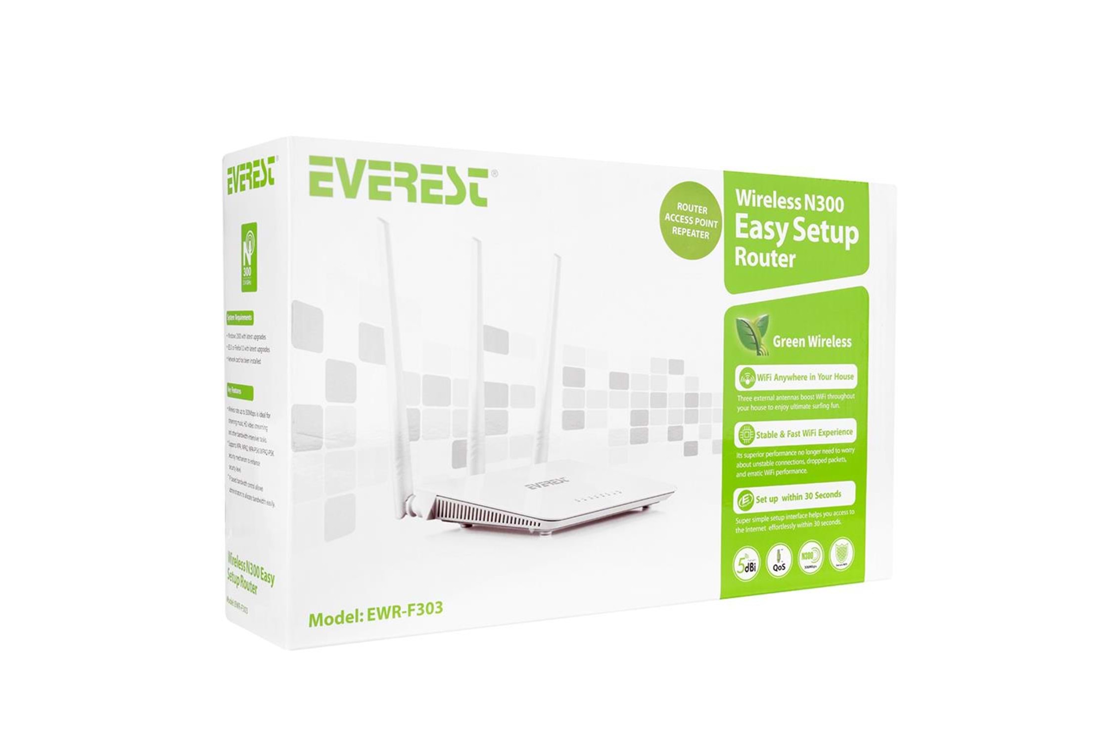 Everest EWR-F303 300Mbps 2.4GHz 3x5dBi Anten 1xWAN 3xLAN Repeater+AP+WISP Destekli Wireless Router