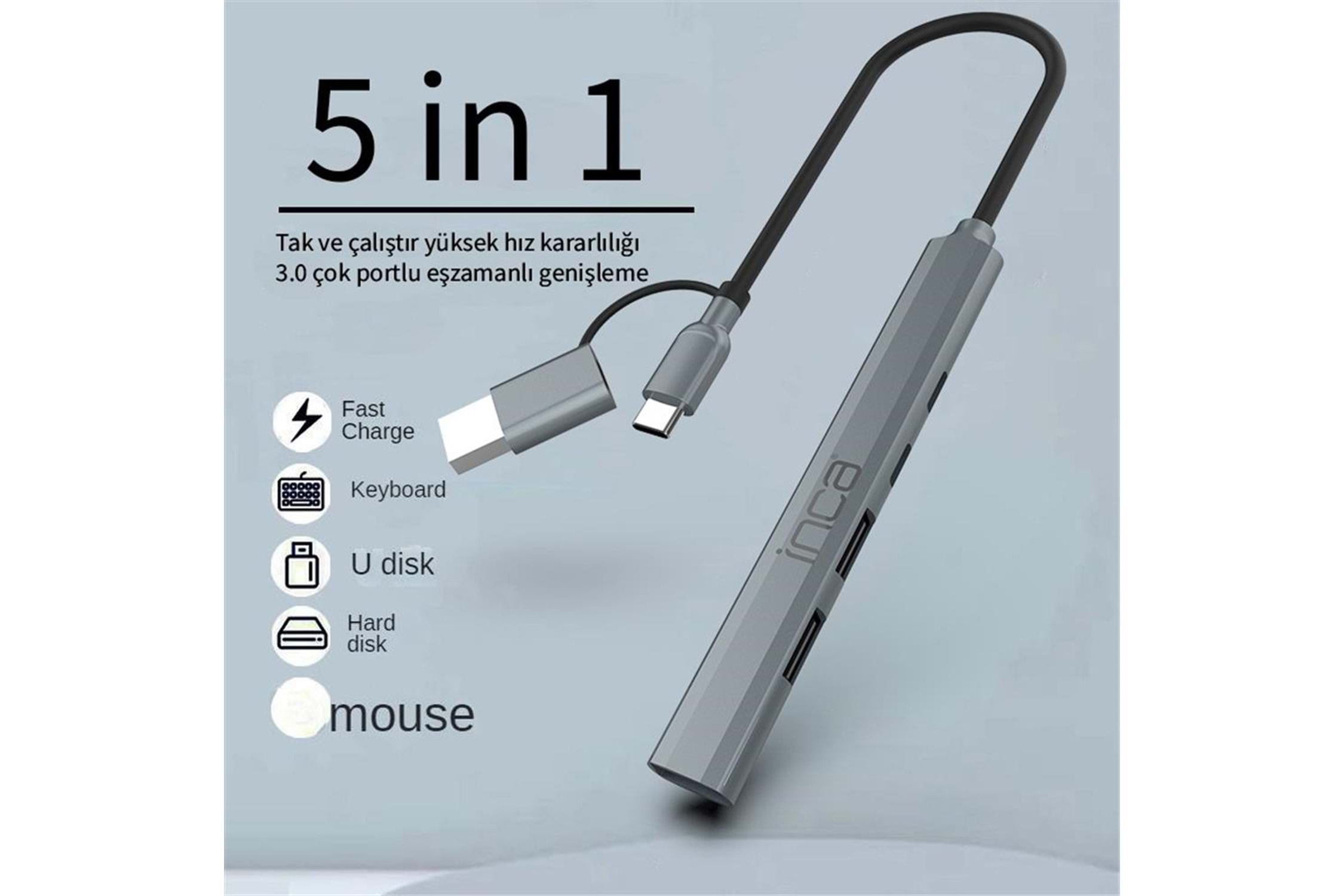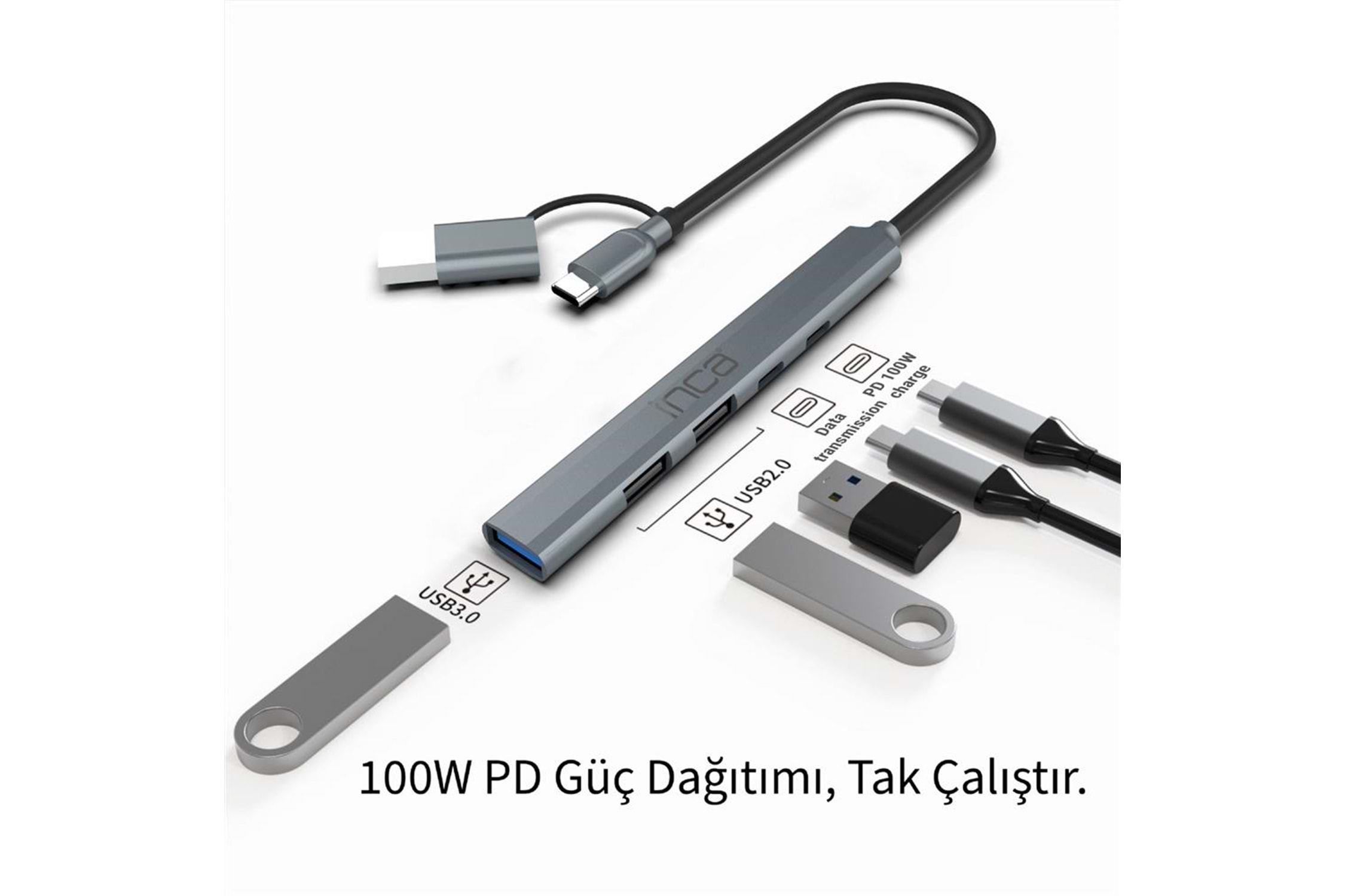 Inca IUTP-06TX 4 USB 3.0 + 2x USB 2.0 + Type-C + PD 100W Çoklayıcı