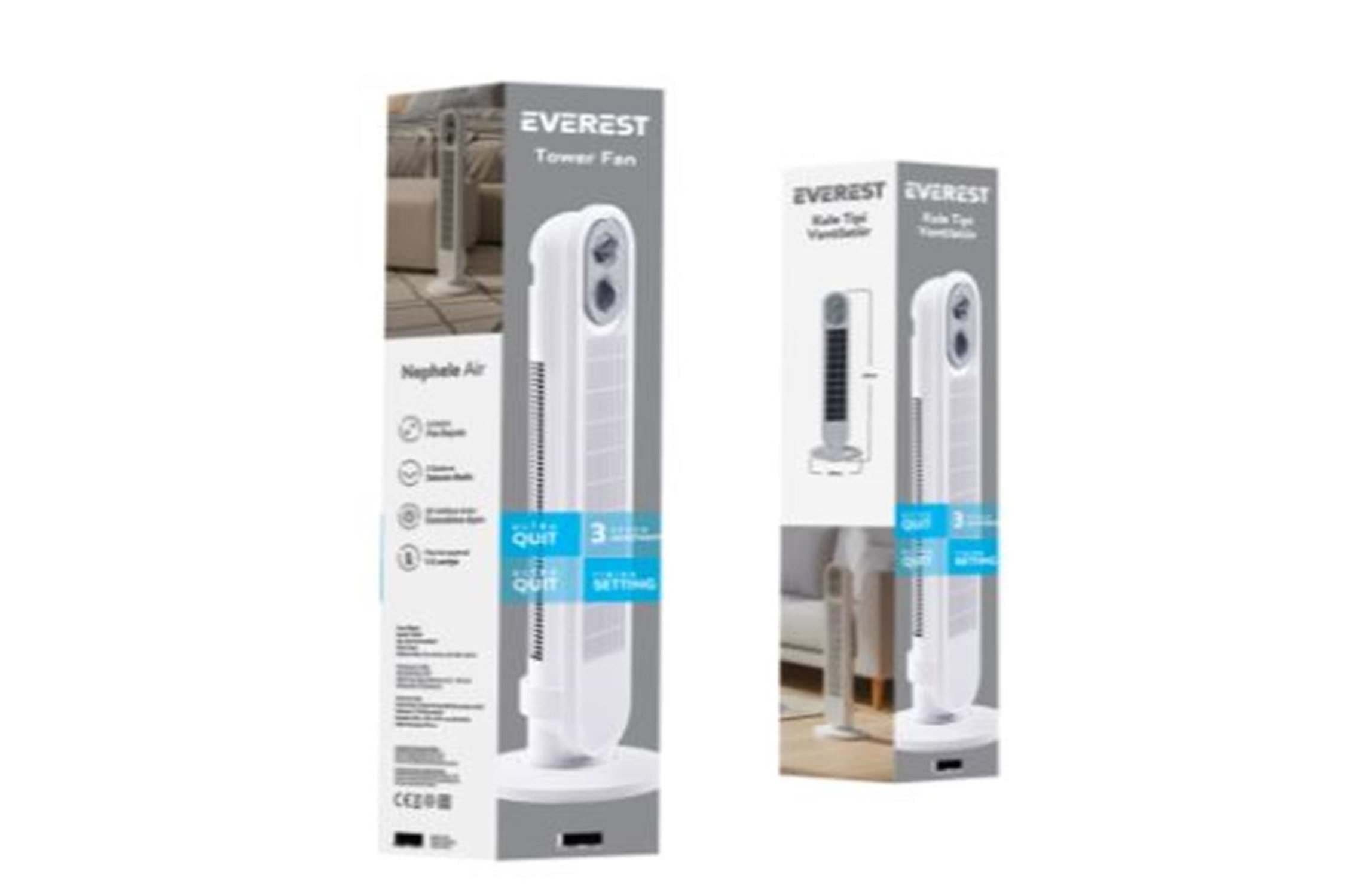 Everest FAN14 Beyaz 31" 50W 3 Hız Kademeli Zamanlayıcı Kule Tipi Vantilatör- Pervanesi