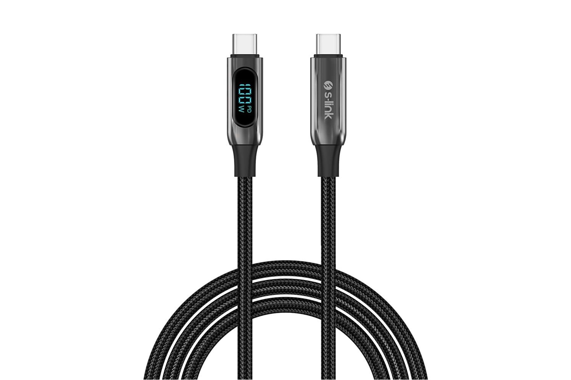 S-link Armor LED LCC-0100 100W 1m Type-C to Type-C PD Örgülü LED Başlıklı Siyah Hızlı Şarj Kablosu