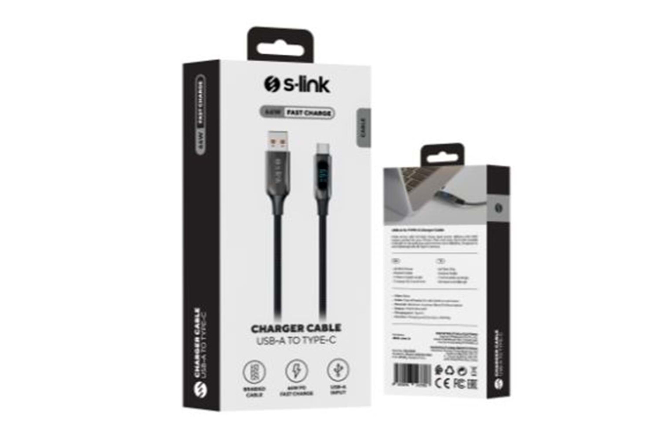S-link Armor LED UC-066 66W 1m USB to Type-C PD Örgülü LED Başlıklı Siyah Hızlı Şarj Kablosu