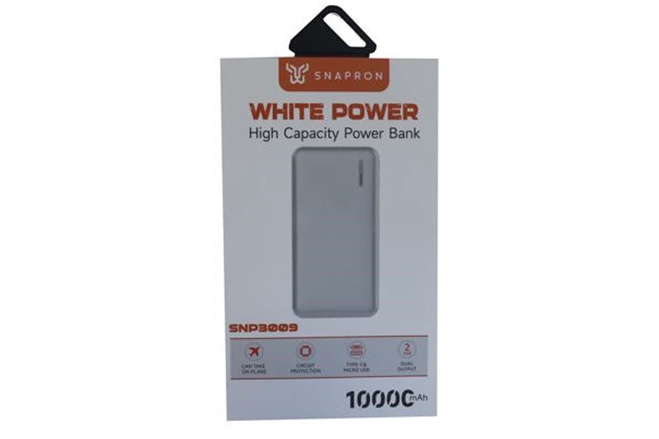 SnapMax SNP-3009 Beyaz 10.000 mah Powerbank 2x USB Çıkışlı 1 Type-C ve 1 Micro Girişli