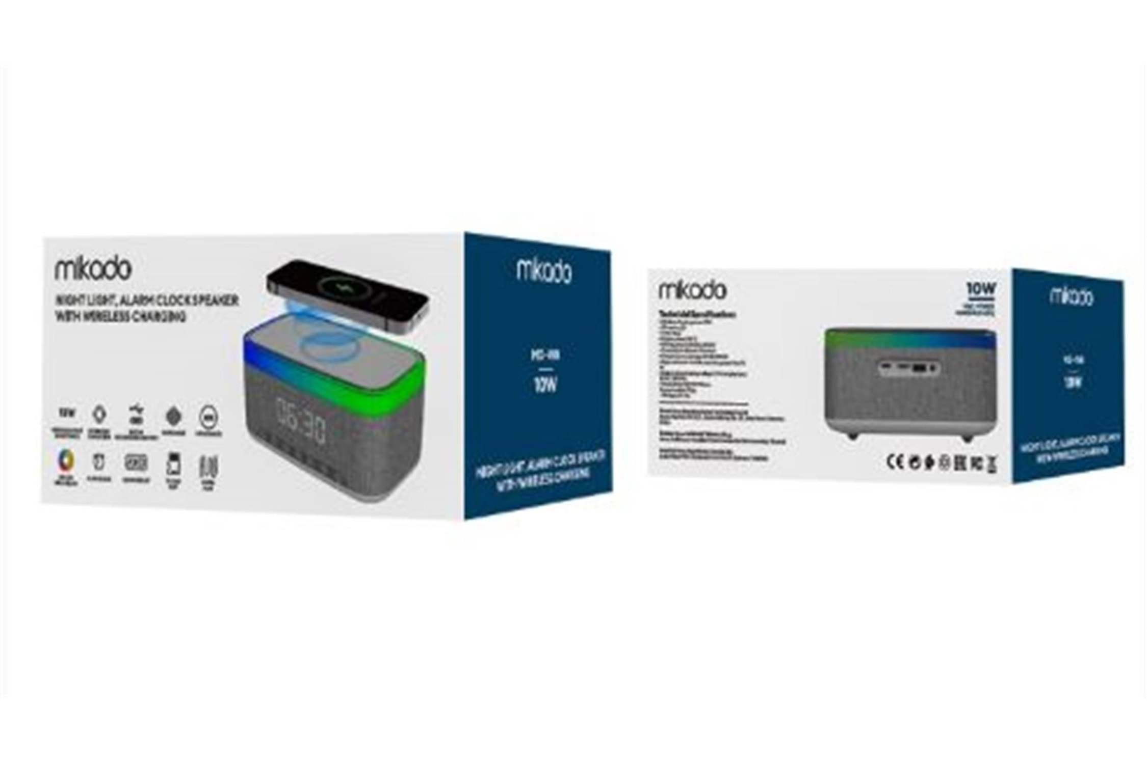 Mikado MD-W8 1200mAh 10W Gri BT,USB,Kablosuz Şarjlı RGB-Gece Lambası Özellikli Alarmlı Saat Speaker