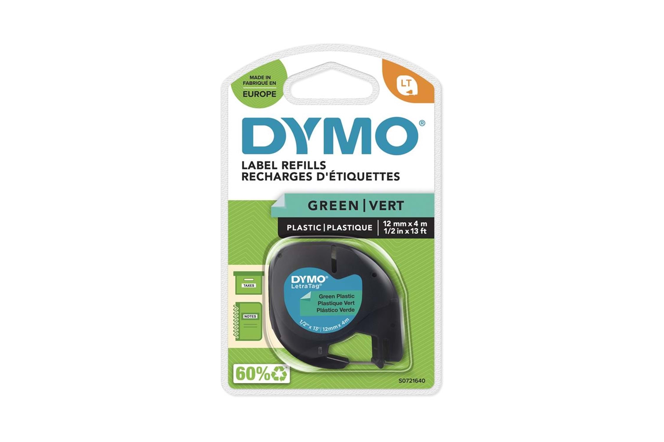 DYMO S0721640 LetraTag Plastik Şerit ( 12 mm X 4 mt ) , Yeşil (59425 ) 91204