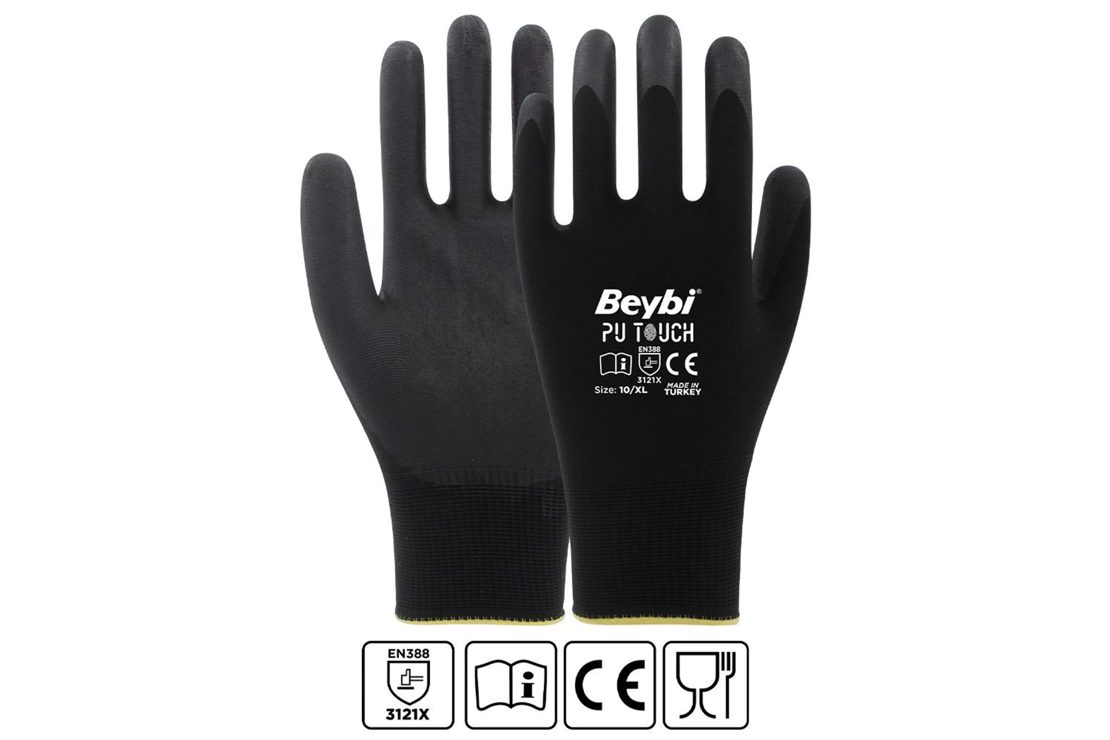 Beybi 7 Beden 12li Paket Poliüretan Kaplı Pu Touch Siyah Montaj Eldiven EN388 (3121X)